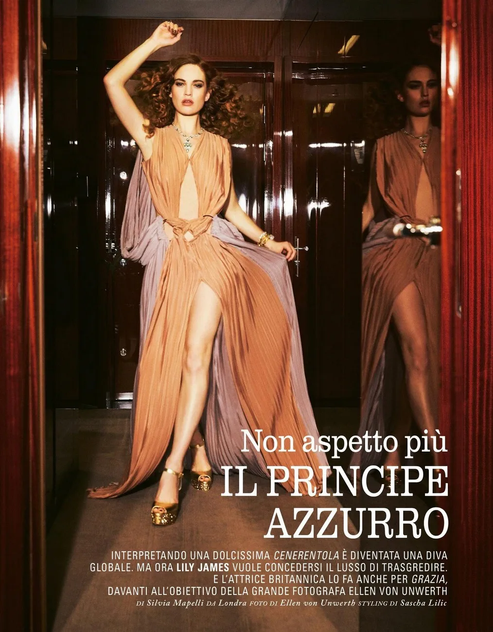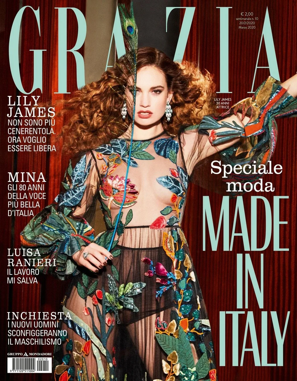 Lily James Grace (Italia) pada foto Allen yang menarik dari Februari 2020.